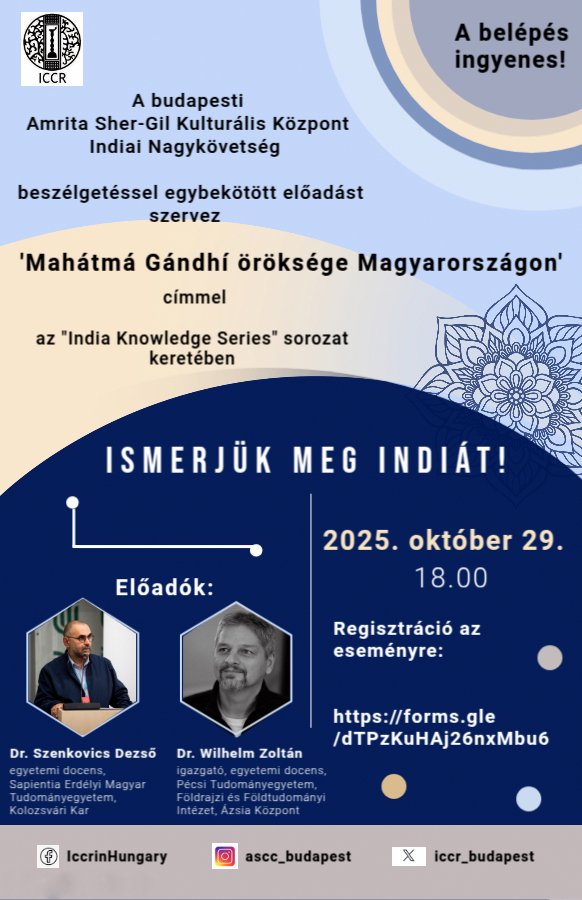 A sorozat következő előadással egybekötött beszélgetése 2025. október 29-én, szerdán 18:00-kor lesz az Amrita Sher-Gil Kulturális Központban, az Indiai Nagykövetségen (1025 Budapest, Búzavirág u. 14.)