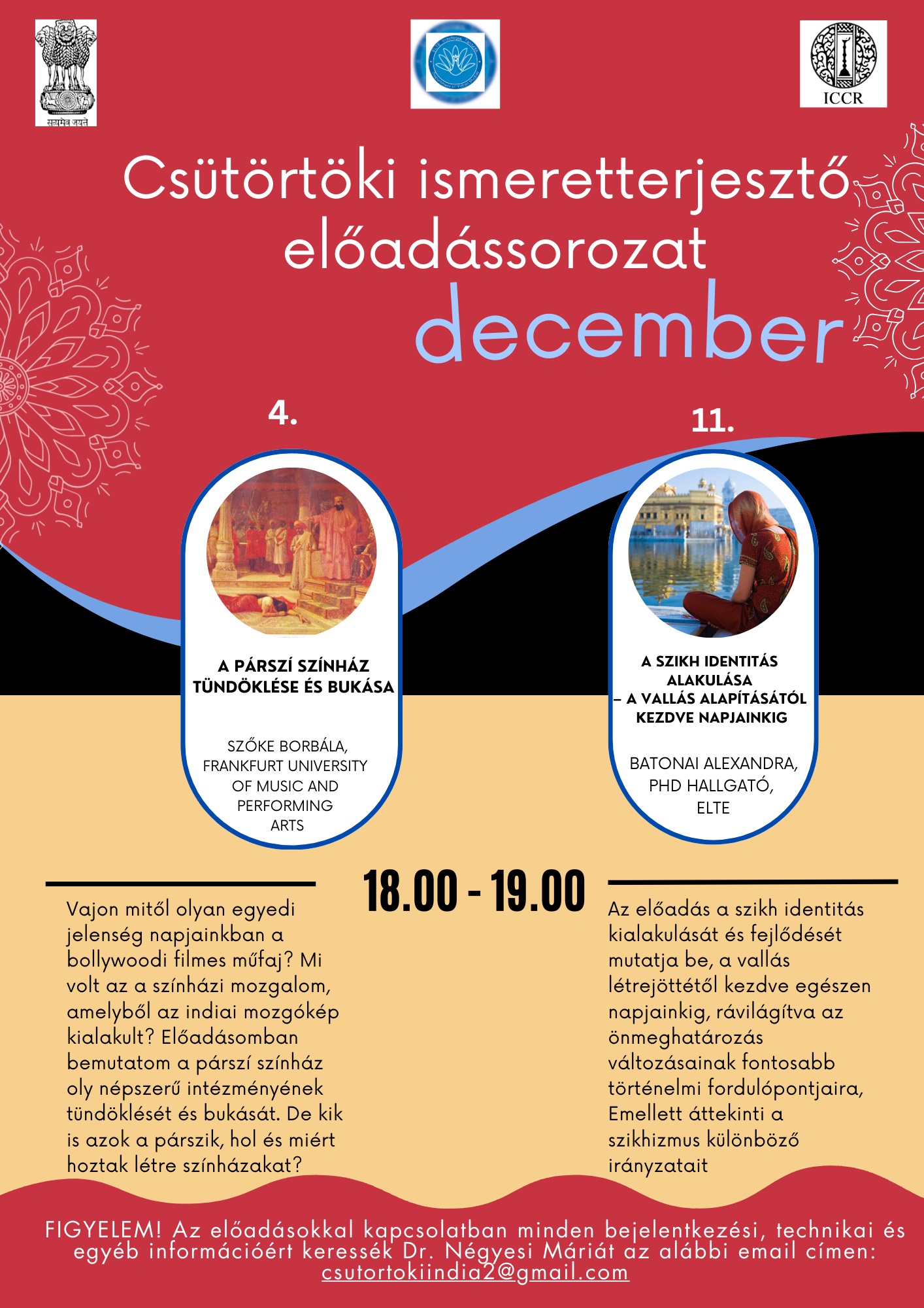 18-19 óra között az indiai kultúráról szóló ismeretterjesztő előadássorozat