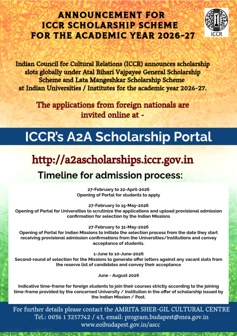Tel.: 0036 1 3257742 / 43, email: program.budapest@mea.gov.in