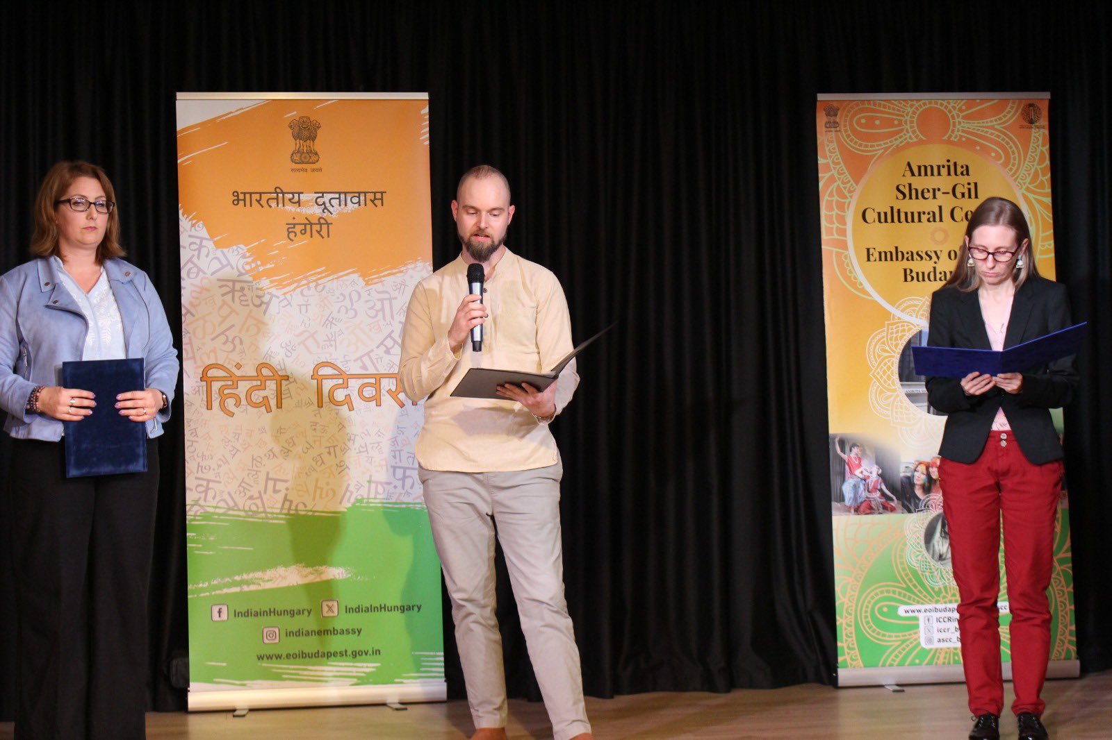 Embassy of India organised Hindi Diwas celebrations, bringing together friends of India & members of Indian community. Event was graced by HE Anshuman Gaur, who addressed the gathering & highlighted the global significance of Hindi. Hungarian friends and members of the Indian Community participated enthusiastically and recited Hindi Poems. Also, the students and teachers of the Amrita Sher-Gil Cultural Centre presented the dance and music performances during the event. - September 26, 2025
